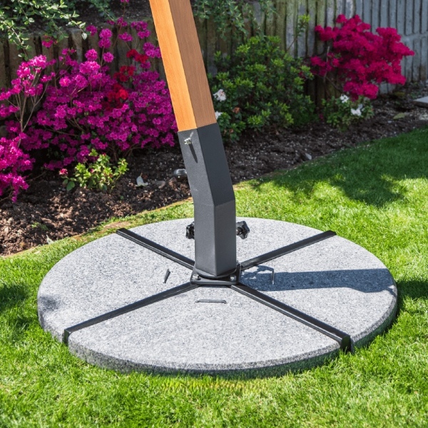 Set de 4 bases plásticas cuadradas rellenables (con agua, arena o piedrecilla, para darle mayor peso), con una capacidad total de 60kg o 60L.